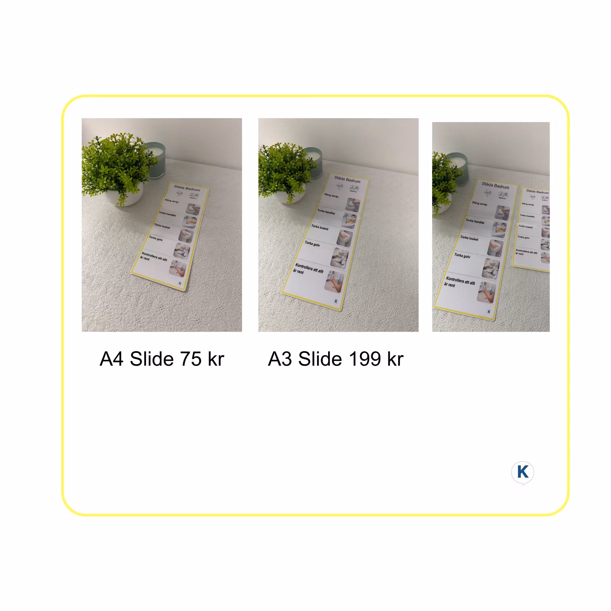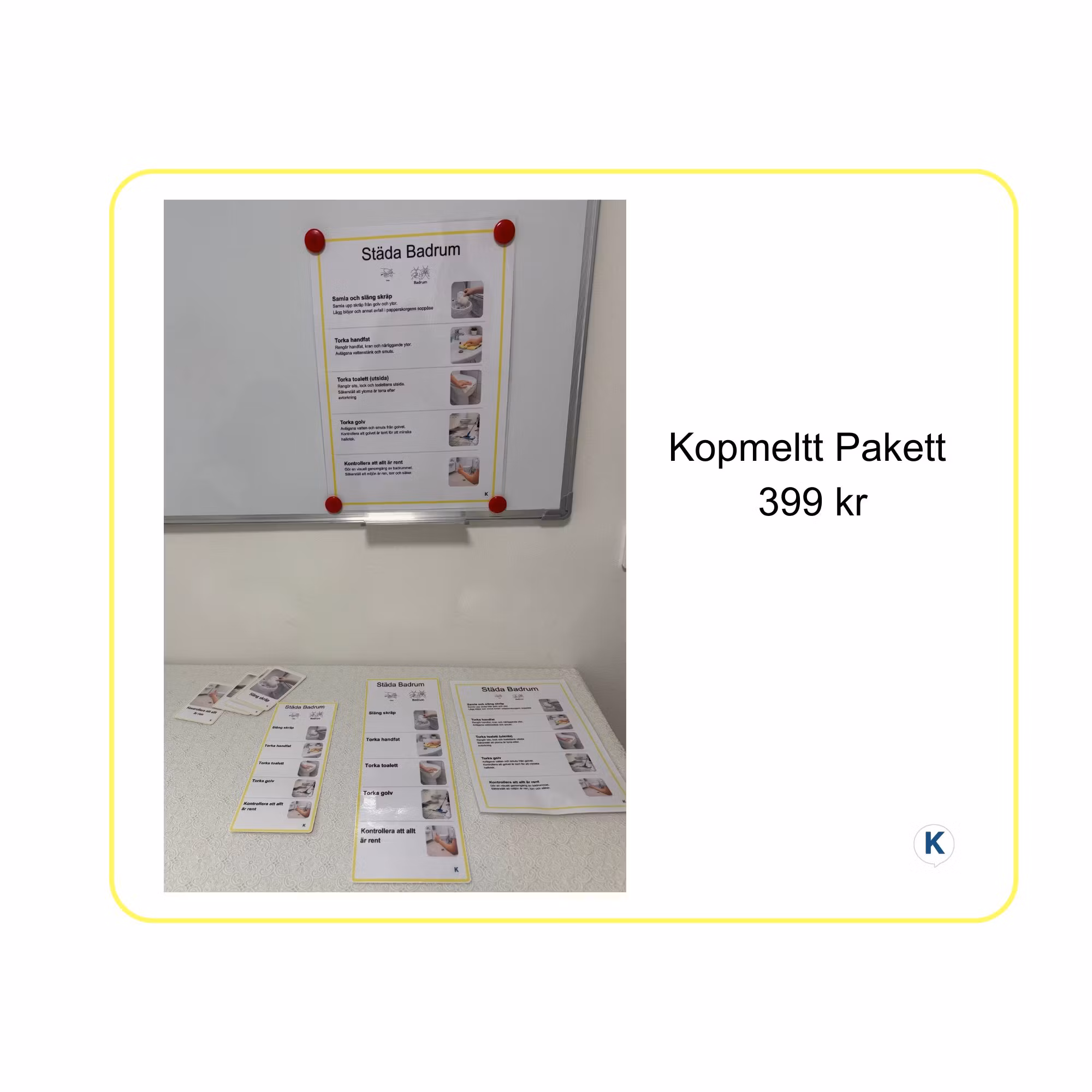 Den tydliga strukturen och de konkreta bilderna skapar enhetliga rutiner, ökad självständighet och trygg arbetsgång vid städning av badrum.